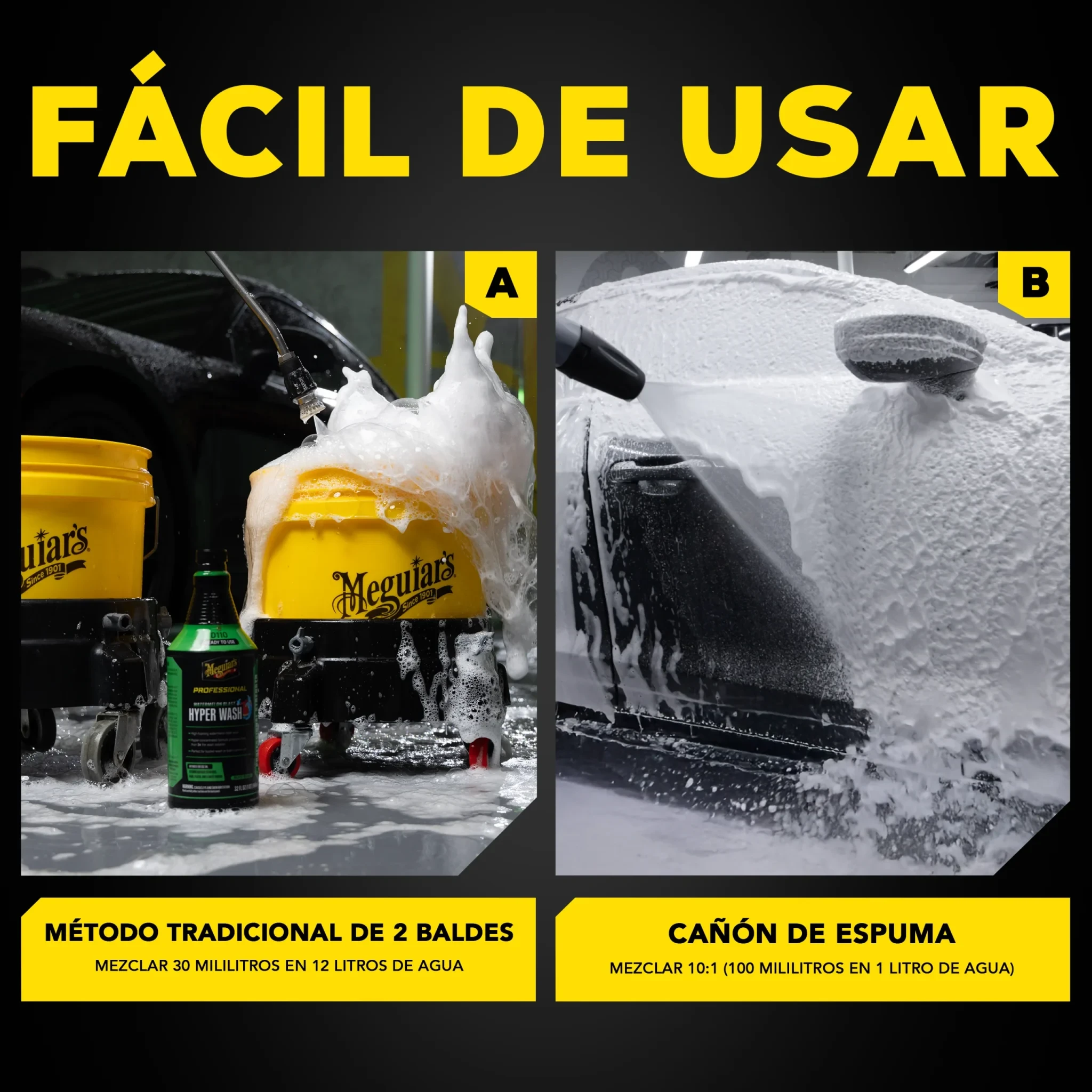 El Hyper Wash Watermelon Blast ofrece un nivel de dilución extremadamente alto, superando a los shampoos tradicionales con una proporción de hasta 400:1 (1 parte de producto por 400 de agua), lo que garantiza un rendimiento superior.